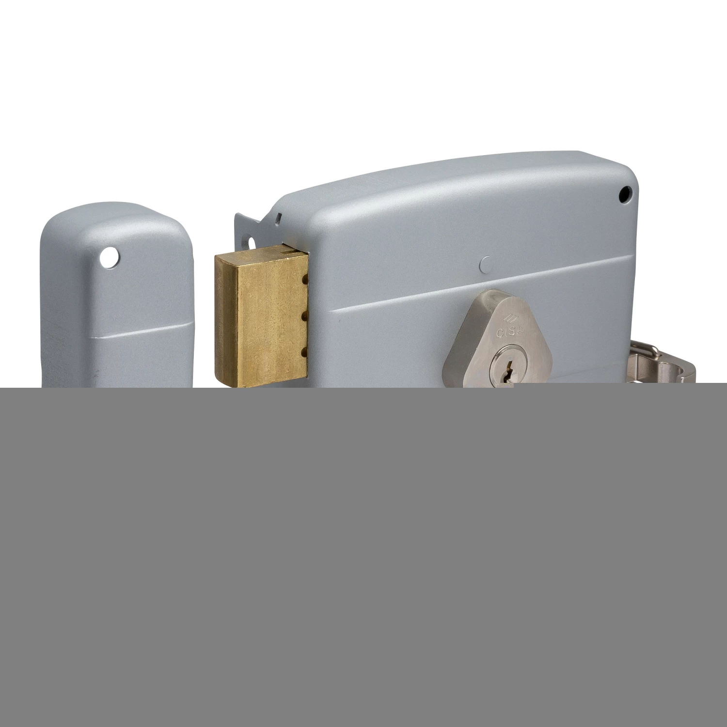 Het grijs gelakte oplegslot heeft een vernikkelde cilinder.