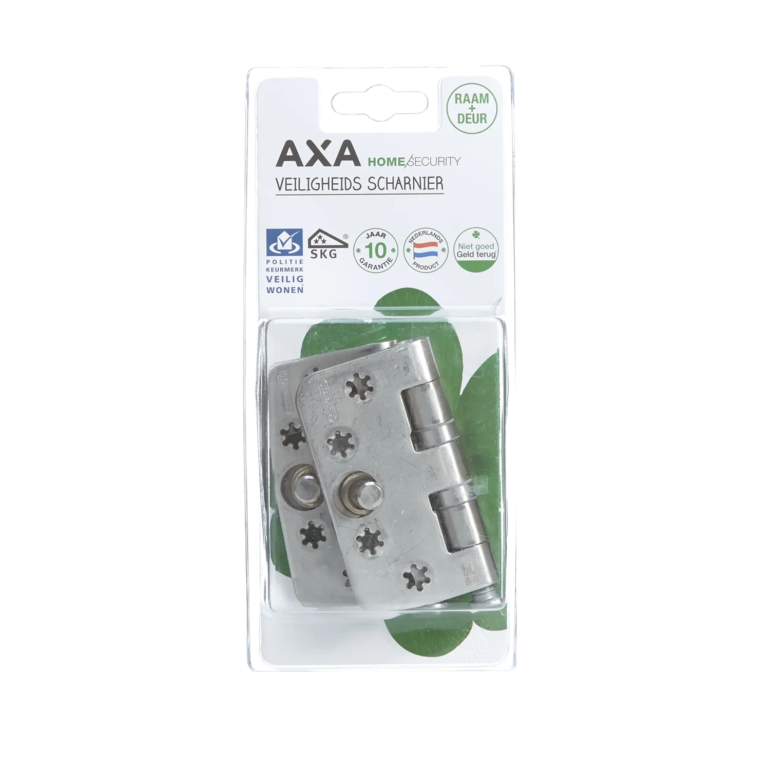 De Axa veiligheidsscharnier RVS SKG3 89x89mm 2 stuks worden geleverd als set van 2 stuks in de afmeting 89x89x3mm van het materiaal RVS. De scharnieren hebben ingebouwde dievenklauwen en zijn voorzien van schijflagers. De scharnieren zijn te belasten tot 80kg bij 2 stuks, 105kg bij 3 stuks en 125kg bij 4 stuks. Daarnaast voldoen ze aan het Politiekeurmerk Veilig Wonen en hebben ze het SKG3 certificaat. Producten met het SKG3 certificaat zijn zelfstandig in staat het binnendringen van inbrekers met ten minste 5 minuten te vertragen.