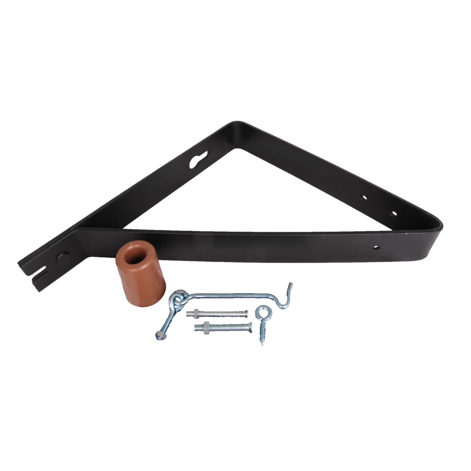 De Deuropvangbeugel 90 graden Zwart complete set gebruik je natuurlijk om een deur mee op te vangen. Deze deurstopper komt compleet met buffer, bevestigingsmateriaal en een windhaak om de deur open te kunnen houden tijdens winderige dagen. De deurvanger is afgewerkt met een zwarte coating.