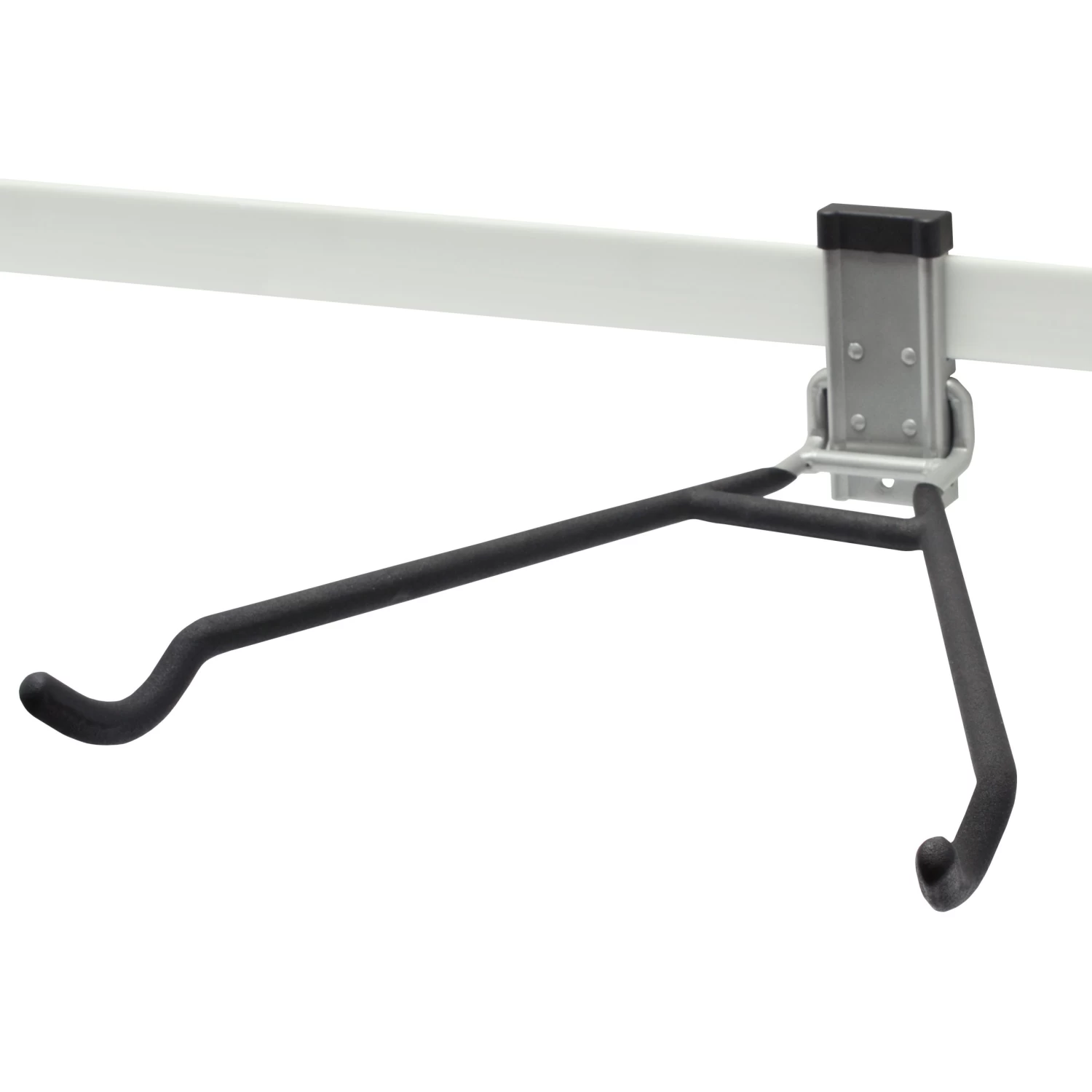 De Duraline track haak fiets mat zilver is een metalen haak om je fiets aan op te hangen. De haak is deels voorzien van kunststof ter bescherming van je fiets. Een dergelijke haak is een heuse ruimtewinner in bijvoorbeeld de garage. Je kunt deze track haak combineren met de track rail. Het draagvermogen van de Duraline fietshaak is 20kg.