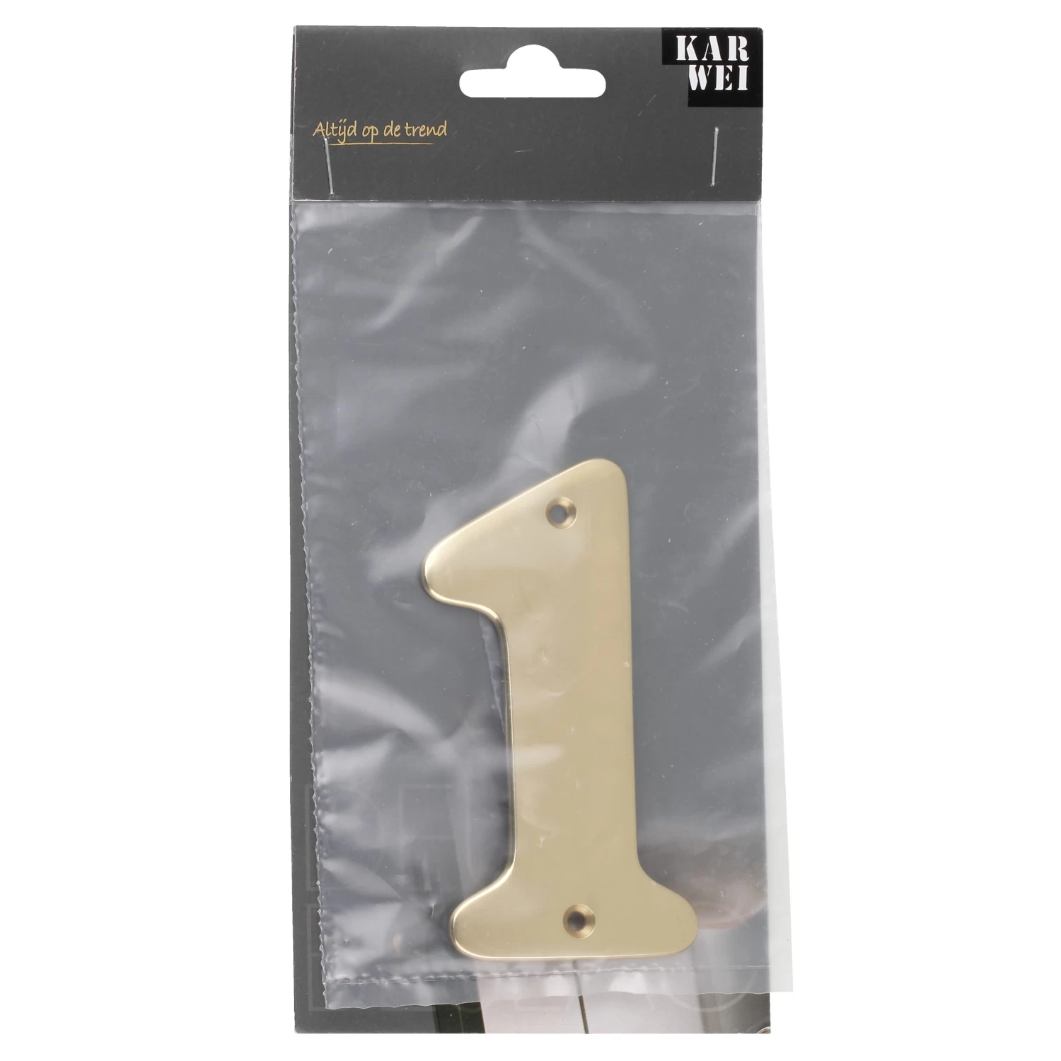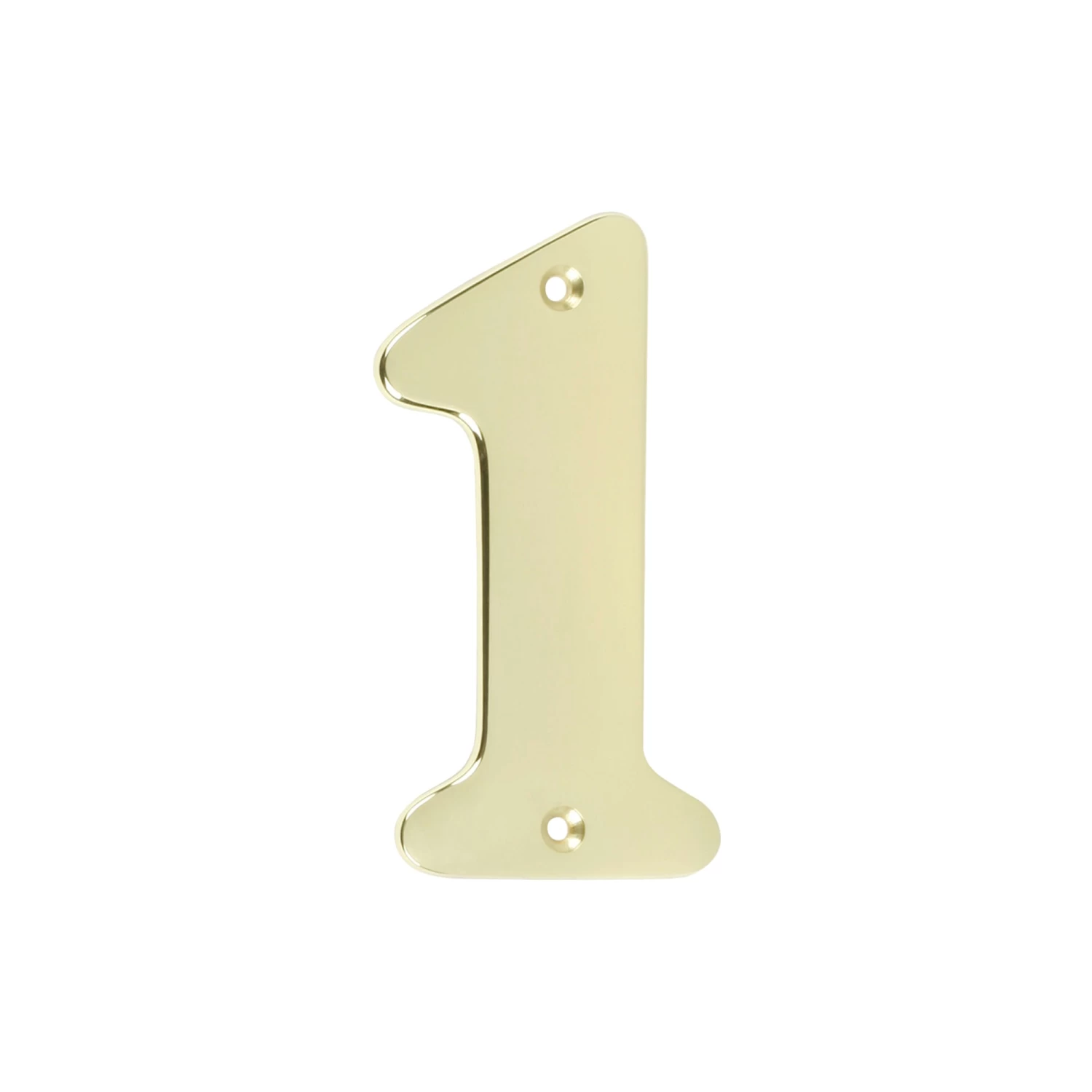 Dit huisnummer is gemaakt van messing en heeft een afmeting van ongeveer 5,7 cm breed en 11 cm hoog. De afstandnokjes aan de achterkant zorgen dat het nummer loskomt van de te bevestigen achtergrond. Dit huisnummer is nummer 1.