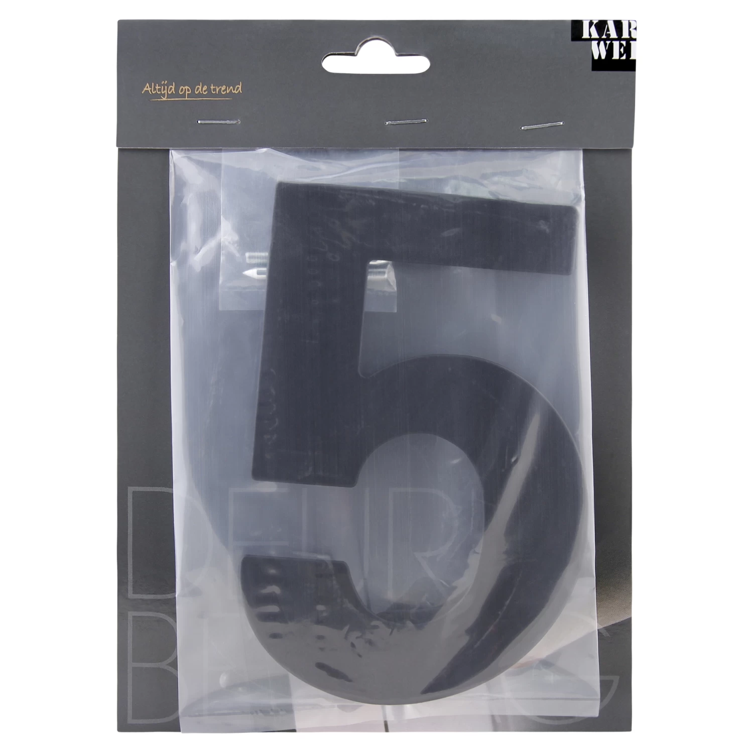 Ben je op zoek naar een mooi zwart huiscijfer voor je huis? Dit Karwei cijfer nummer 5 is het ideale cijfer voor je klus. Zorg ervoor dat de postbode je pakketje altijd op het juiste adres bezorgt. Het huisnummer is gemaakt van RVS en gecoat in zwart. De afmetingen bedragen circa 15 x 10 cm en zijn groot genoeg om duidelijk zichtbaar te zijn.