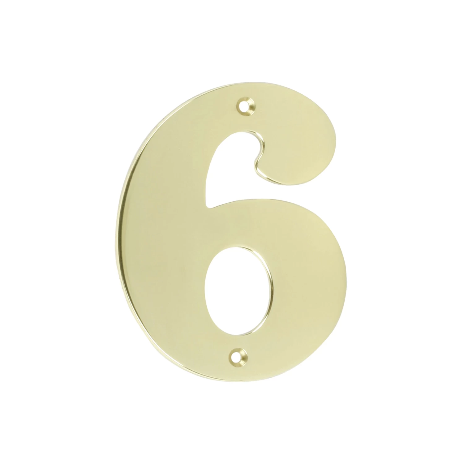 Dit huisnummer is gemaakt van messing en heeft een afmeting van ongeveer 9 cm breed en 11 cm hoog. De afstandnokjes aan de achterkant zorgen dat het nummer loskomt van de te bevestigen achtergrond. Dit huisnummer is nummer 6 of 9.
