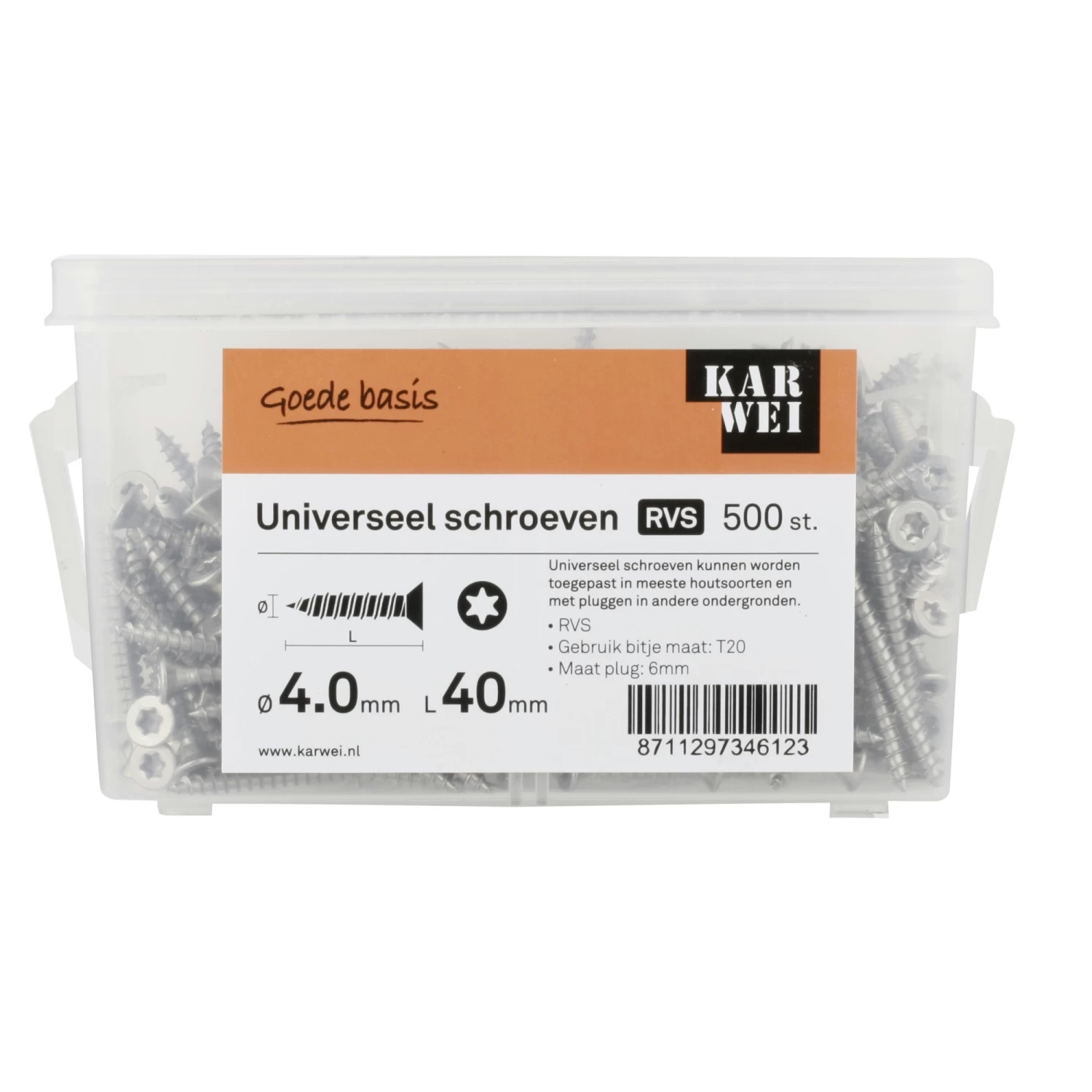 KARWEI Unischroef Platkop Rvs 4×40 Mm (500 Stuks)
