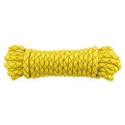 Gekleurd gevlochten polypropyleen touw met diameter 10mm en lengte 10m. Drijft op water en is bestand tegen wrijving. Veelzijdig gebruik in en om het huis. Kleur: hoofdkleur geel met groene en rode spikkels.