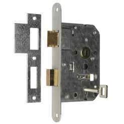 Het Nemef binnendeurslot 55mm met gelakte voorplaat is een afsluitbaar slot dat met een eenvoudige sleutel wordt bediend. De slotkast is uitgevoerd in hoogwaardig kunststof. Door de universele maatvoering vervangt dit slot eenvoudig je bestaande slot. Dit slot kan op een naar binnen- of naar buitendraaiende deur zowel links als rechts geplaatst worden. De voorplaat is 174mm lang en de slotkast is circa 81mm bij 117mm. Verpakt per stuk inclusief sluitplaat, bevestigingsmateriaal, sleutel en een duidelijke montagehandleiding.