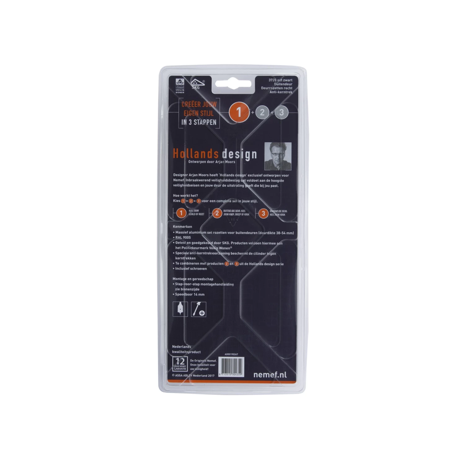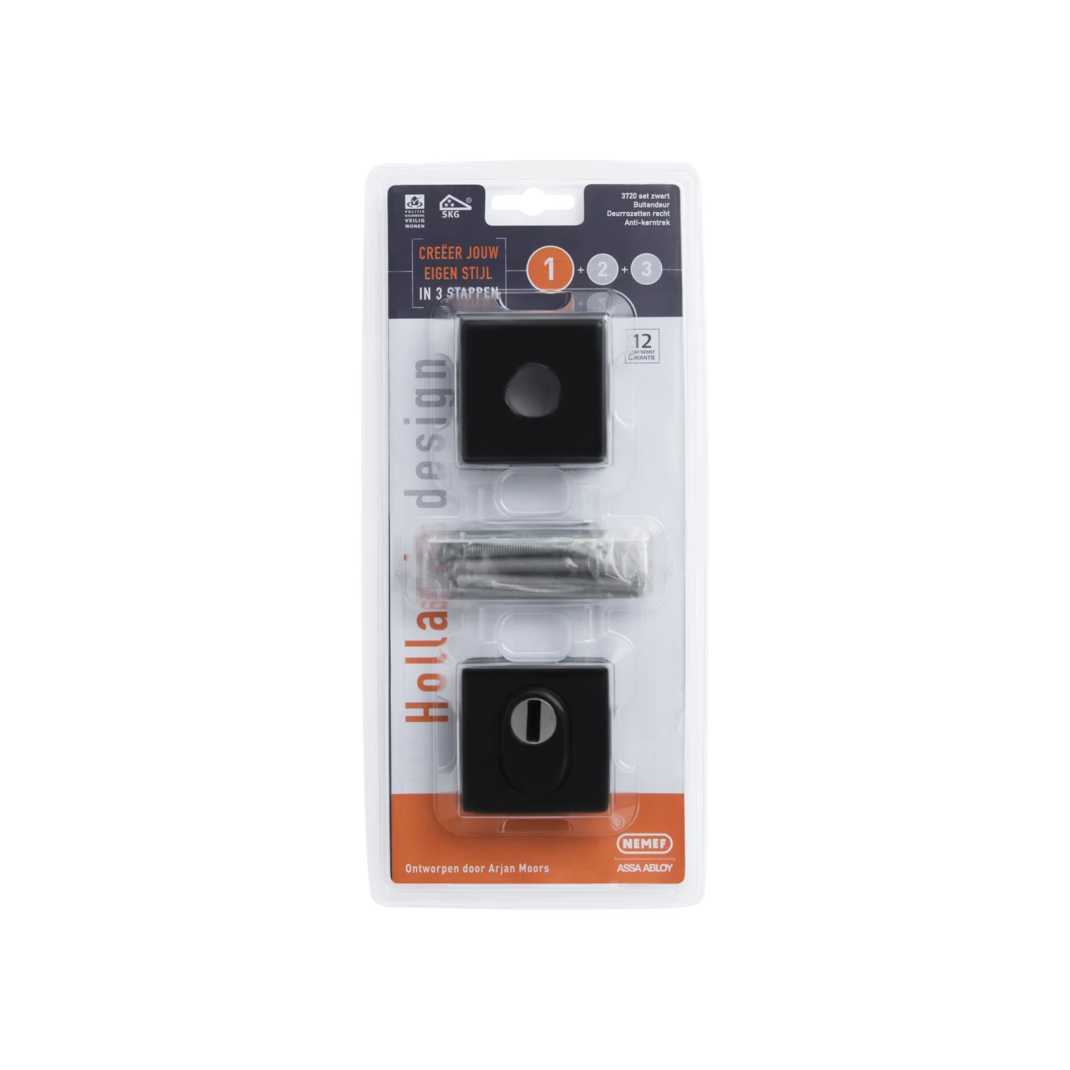 Wil jij de buitendeuren van je huis afwerken met zwart veiligheidsbeslag dat ontworpen is door een bekende Nederlandse ontwerper? Deze zwarte SKG*** deurrozet is ontworpen door designer Arjan Moors en is onderdeel van de ‘Hollands design’-serie van Nemef. Dit artikel bevat een binnen- en buitenrozet. De rozetten hebben een afmeting van 59×59 mm en zijn geschikt voor buitendeuren met een deurdikte van 40-54 mm.