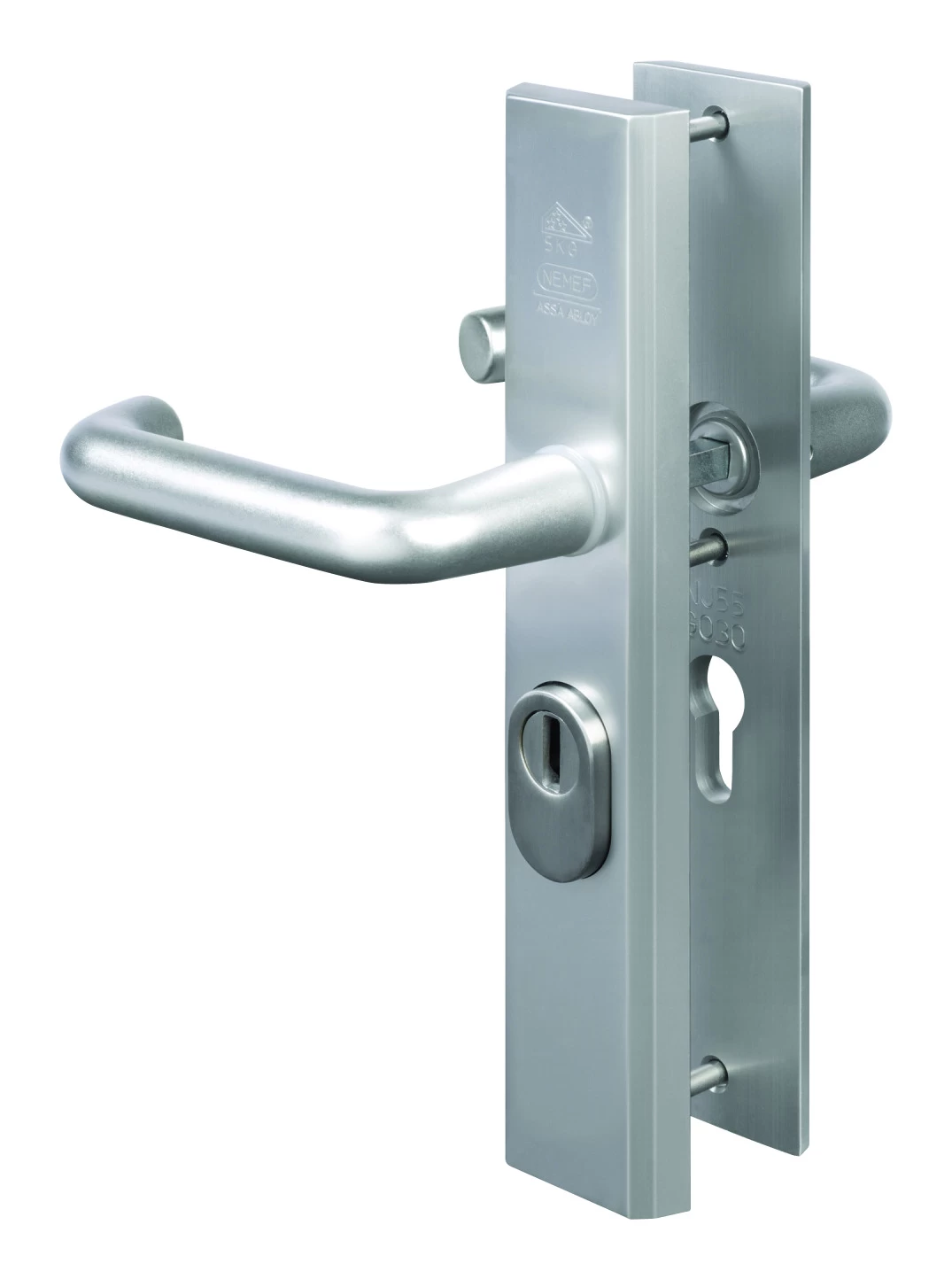 Het Nemef veiligheidsbeslag met kerntrekbeveiliging SKG3 55mm achterdeur zorgt ervoor dat je deurcilinder wordt beschermd tegen de kerntrekmethode. Door de combinatie kruk/kruk is dit veiligheidsbeslag geschikt voor links- en rechts draaiende achterdeuren. Bestemd voor deuren met een dikte van 38-42 mm. Het veiligheidsbeslag is gemaakt van aluminium en heeft naast het Politiekeurmerk Veilig Wonen een SKG3 keurmerk. Producten met het SKG3 keurmerk zijn zelfstandig in staat het binnendringen van inbrekers met ten minste 5 minuten te vertragen. Geleverd als 1 set veiligheidsbeslag met kerntrekbeveiliging inclusief deurkrukken, bevestigingsmateriaal en een duidelijke montagehandleiding.