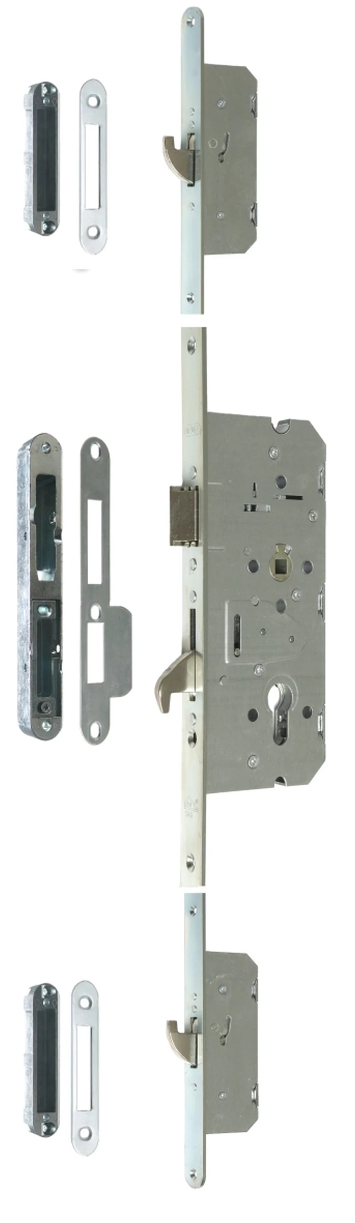Ben je op zoek naar een meerpuntssluiting voor je achterdeur dat ook een veiligheidskeurmerk heeft? Ga dan voor deze krukbediende Nemef veiligheidsmeerpuntssluiting. De meerpuntssluiting heeft 3 haakschoten. Door de kruk van de sluiting omhoog te bewegen draai je op 3 plekken in één keer je achterdeur op slot. Met de deurkruk wordt de dagschoot bediend en met de sleutel kan de deurkruk worden geblokkeerd . De sluiting heeft een voorplaatlengte van 1700 mm. De meerpuntssluiting is niet geschikt voor voordeuren. Deze meerpuntssluiting wordt geleverd inclusief sluitplaten en sluitkommen.