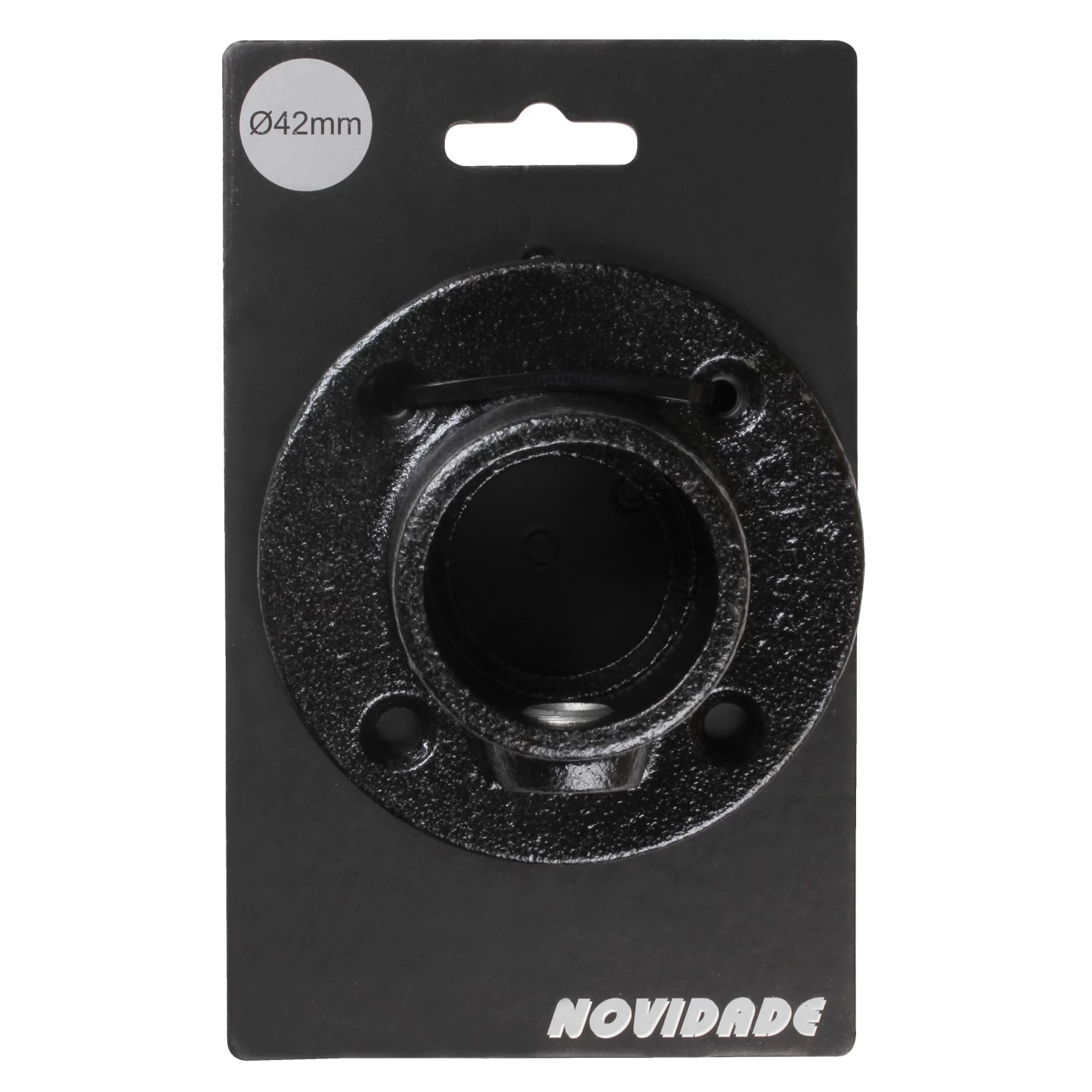 Novidade steigerbuis koppelingen voor een industriële look. Novidade steigerbuis koppelstuk ronde voetplaat 42 mm zwart gebruik je om een buis tegen een wand of op een vloer te bevestigen, tevens heb je hier een stelmogelijkheid van ongeveer 10 mm. De zwarte steigerbuis koppelingen zijn niet geschikt voor buiten.