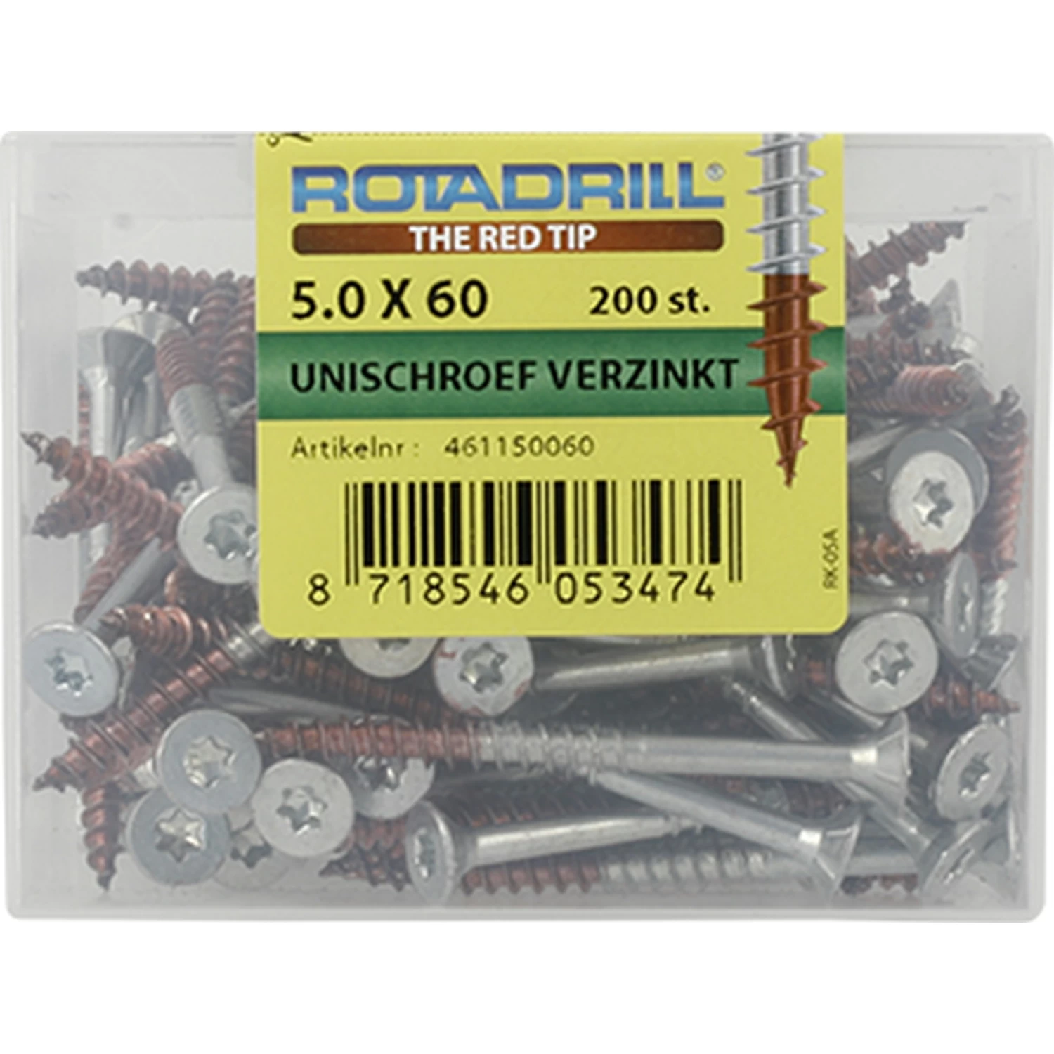 Rotadrill® Universeelschroeven Platkop Verzinkt Torx zijn bedoeld voor gebruik binnenshuis in hout of in een plug. Met de Torx-schroeven heb je veel meer grip door de optimale krachtoverbrenging van het bitje op de schroef. Hierdoor kun je gemakkelijk schroeven. De rode punt aan de Rotadrill® schroeven is een gepatenteerd smeermiddel dat er voor zorgt dat de schroeven zeer licht indraaien voor optimaal schroefgemak. Hierdoor zijn de schroeven zeer gemakkelijk te verwerken in verschillende bouwstoffen. De platverzonken kop verzinkt netjes in het hout bij het aanschroeven en is bedoeld voor hout-op-hout verbindingen. Geleverd in een stevige kunststof bewaarverpakking. In iedere kuip-verpakking wordt gratis het bijpassende Torx-bitje meegeleverd.