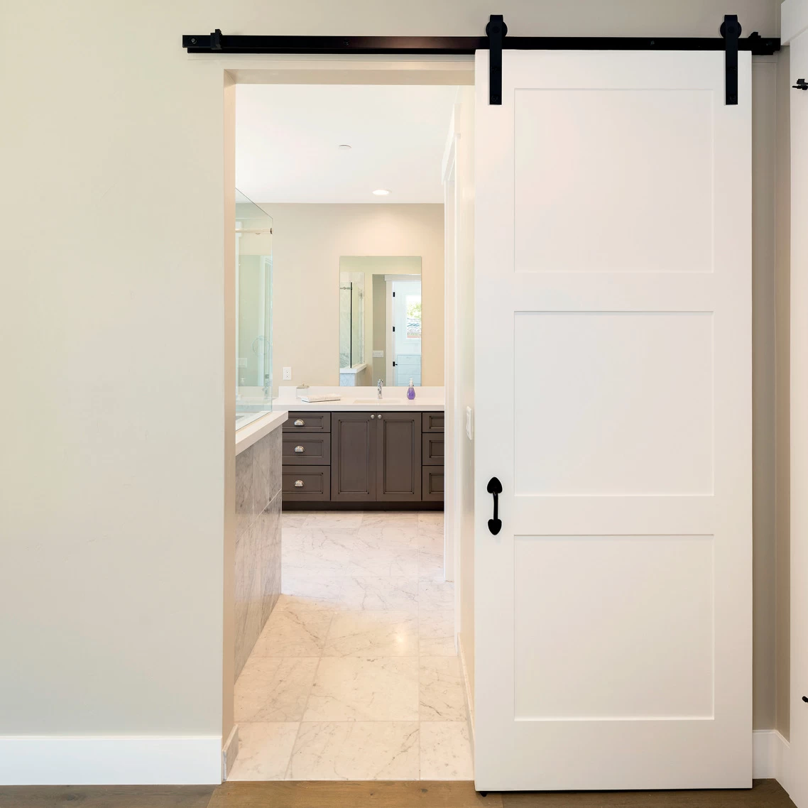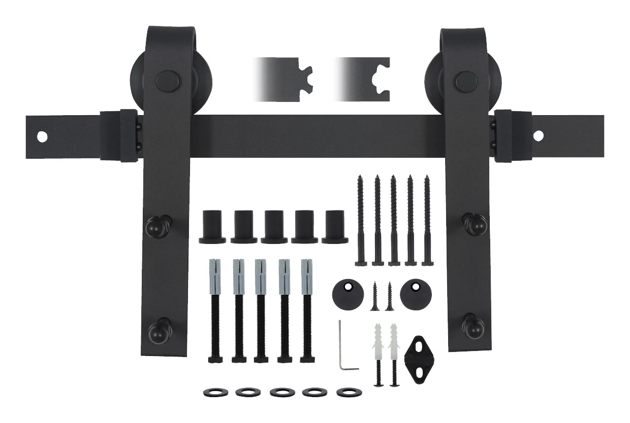 Met deze complete set voor een schuifdeursysteem maak je eenvouidig van een standaard deur een schuifdeur. Deze set is geschikt voor alle deuren met een gewicht van maximaal 150 kg en een dikte van maximaal 4 cm. De set heeft 2 koppelbare rails van 100 cm zodat de totale lengte van de rail 2 meter is. Gebruik je een standaard (binnendeur) van bijvoorbeeld 83 cm breedte dan kan de deur dus volledig open. De set wordt geleverd inclusief 2 gelagerde stalen hangrollen, 2 stalen deurstoppers, afstandshouders voor op de deur en de vloergeleider.